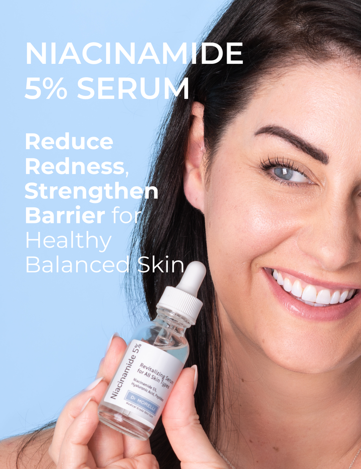 - Niacinamide 5% Serum - This brightening serum, containing Niacinamide, Peptides, and Hyaluronic Acid, helps even skin tone, reduce redness, and strengthen your skin’s barrier, keeping your complexion radiant and glowing through winter festivities.